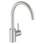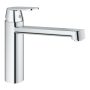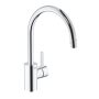 Η μπαταρία κουζίνας μονού μοχλού GROHE Eurosmart Cosmopolitan της GROHE είναι εξοπλισμένη με χαρακτηριστικά για επιδόσεις σε πολύ φορτωμένες κουζίνες, μέσα σε ένα αστραφτερό περιτύλιγμα. Η τεχνολογία GROHE EasyDock σημαίνει πως η κεφαλή του ντους αναδιπλώνεται αυτόματα μέσα στο ρουξούνι, χάρη στην αντλία χαμηλής τριβής Glideflex και στο μολύβδινο αντίβαρο. Αν ο νεροχύτης και το στραγγιστήρι σας βρίσκονται σε κεντρική νησίδα, η στρωτή περιστροφή των 360˚ είναι ό,τι πρέπει, με την τεχνολογία GROHE SilkMove να εγγυάται στρωτή λειτουργία. Το υψηλό ρουξούνι είναι τέλειο για να γεμίζετε μεγάλες κατσαρόλες και, όταν χρειάζεστε ακόμα περισσότερη ευελιξία, η αποσπώμενη κεφαλή ντους προσφέρει ισχυρό πίδακα για το πλύσιμο ή λεπτό ψεκασμό για το ξέπλυμα. Μόλις κλείσετε τη μπαταρία η κεφαλή ρυθμίζεται στον λεπτό ψεκασμό – κι έτσι δεν θα βραχείτε ξαφνικά. Η επικάλυψη χρωμίου GROHE StarLight σημαίνει ότι μπορείτε απλώς να σκουπίσετε με ένα στεγνό πανί για να μην αφήσετε σημάδια με ελάχιστη συντήρηση, ενώ το φιλτράκι SpeedClean διαθέτει εύκαμπτα ακροφύσια σιλικόνης ώστε να απομακρύνετε απλά με ένα σκούπισμα κάθε υπόλειμμα αλάτων.
