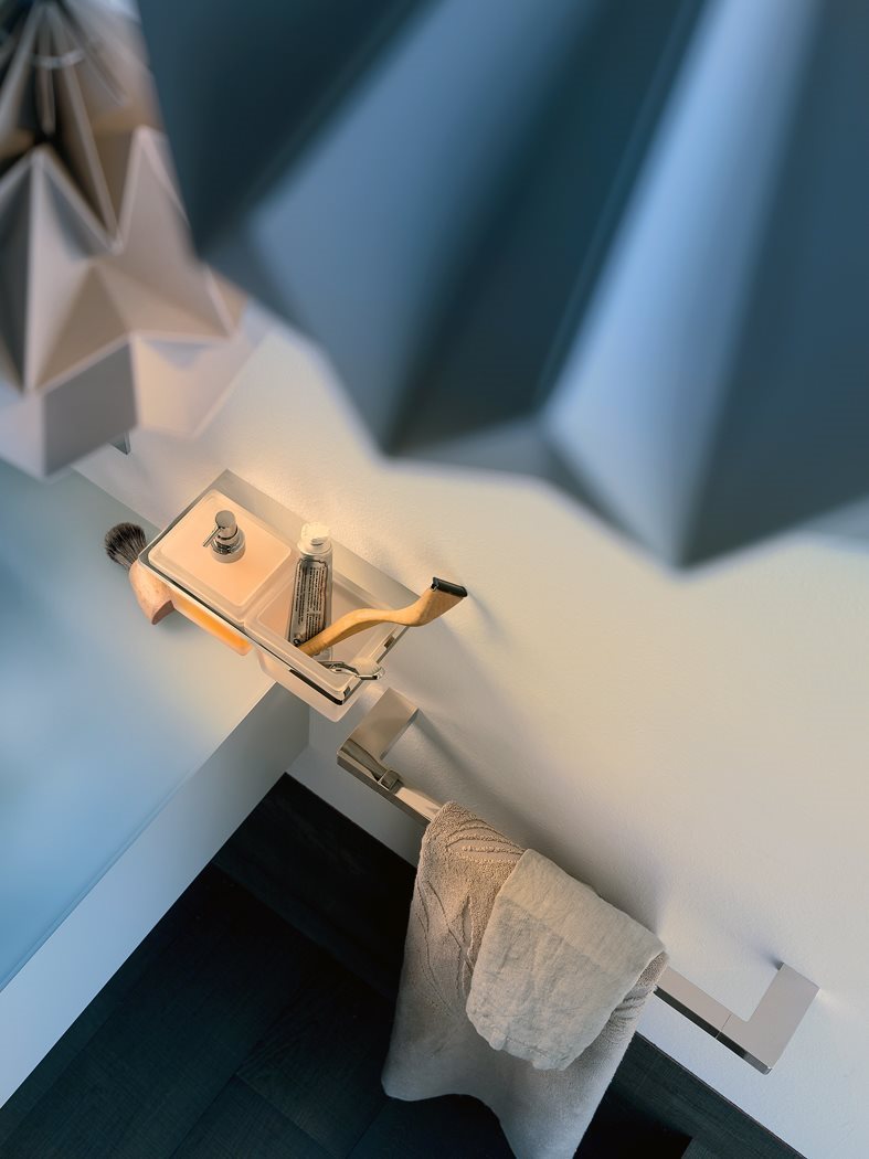 Oλοκληρωμένη σειρά αξεσουάρ μπάνιου, με 19 αντικείμενα σε αυστηρή και λιτή γραμμή βιομηχανικού σχεδιασμού. Χειροποίητα, από 100% ορείχαλκο, με γωνίες κολλημένες στο χέρι και άψογο φινίρισμα.